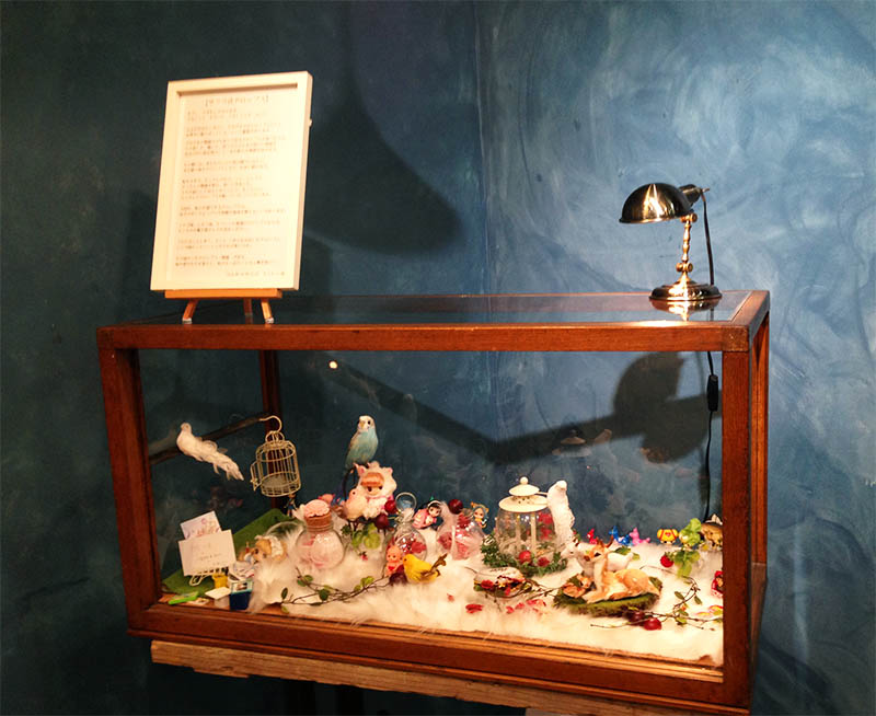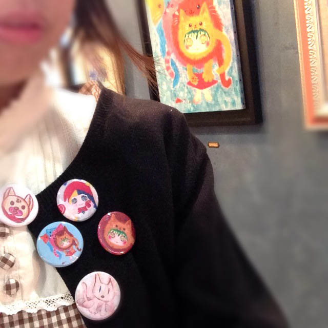 首から提げてるのは、持ち帰りできるミニ額入り原画!