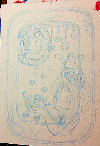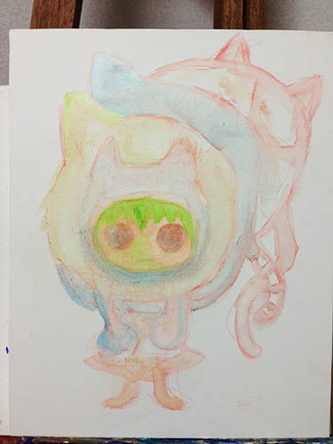 新しい気付きにつながったりするので、下書きはだいたい水彩色鉛筆です。