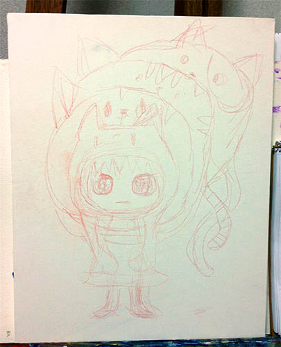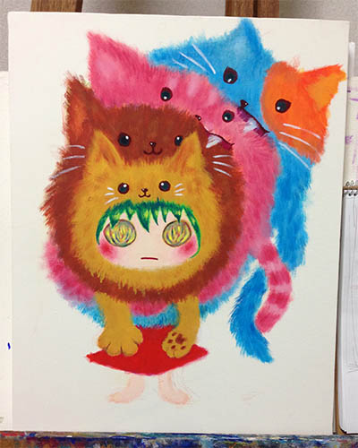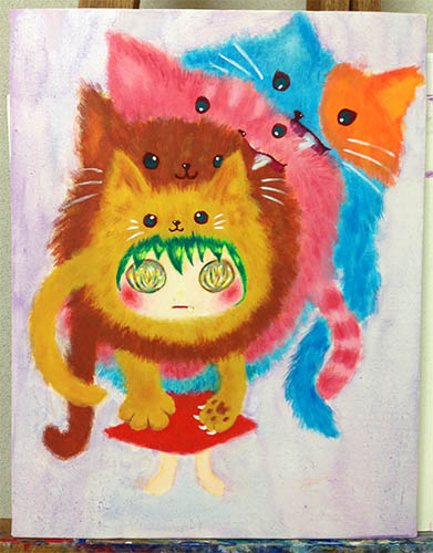 猫かぶりっ子は完成、あとは背景かなと言う段階。